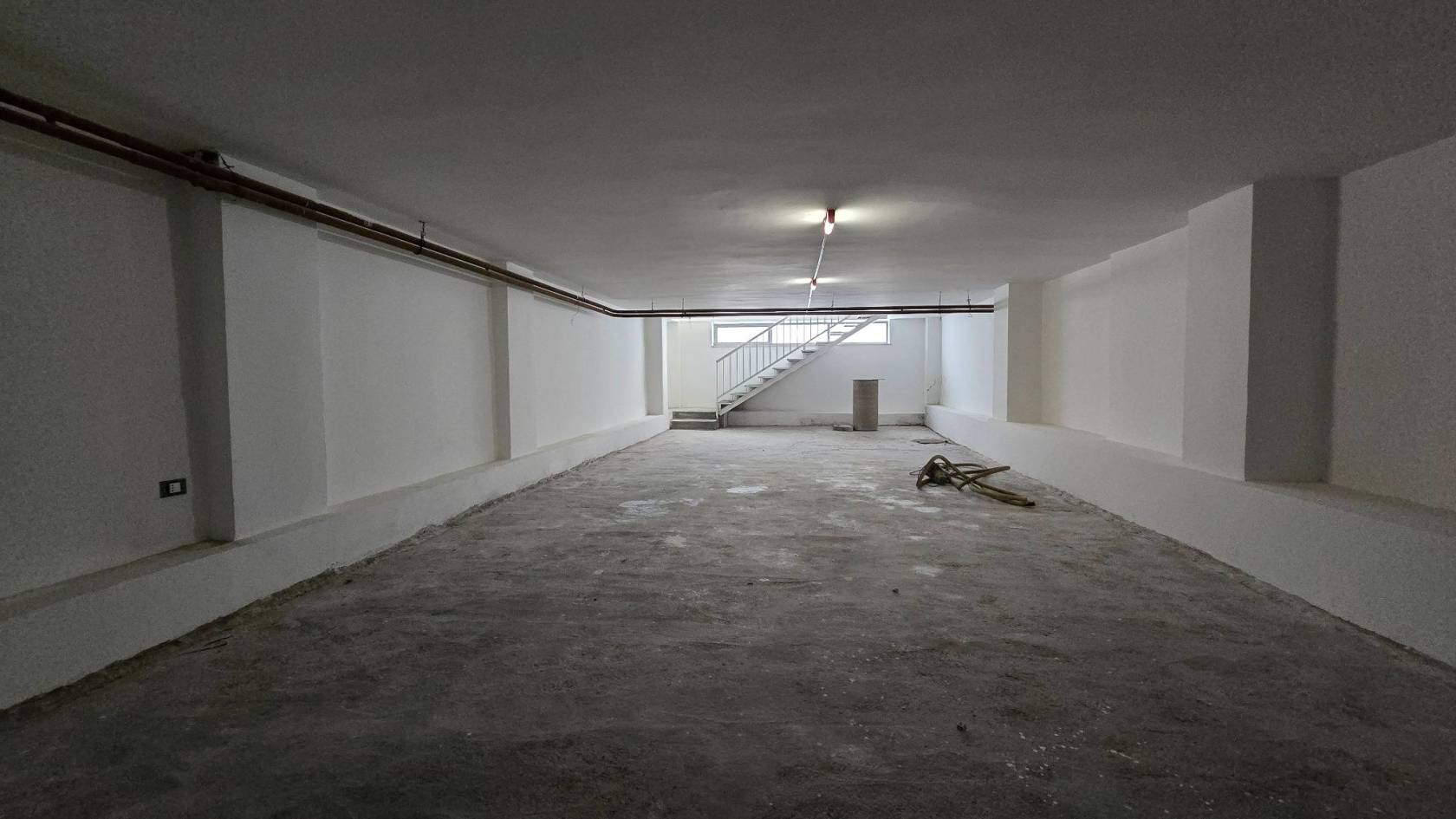 Il locale principale dell'immobile è di circa 90 mq, è alto 5,35 m ed è dotato di tre vetrine. Sulla destra sono presenti una porta tramite cui si accede a un disimpegno con un bagno finestrato e una scala che porta a un soppalco di circa 40 mq e dell'altezza di 2,40 m. Tramite un ulteriore scala, posta in fondo al locale, si accede al magazzino di circa 80 mq con altezza 2,3 m, sito al piano S1.