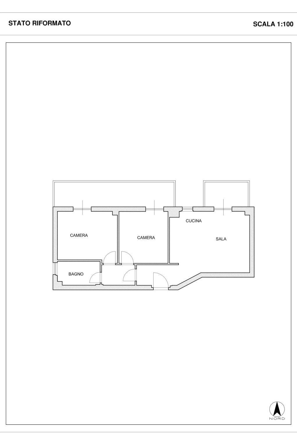 L'immobile si compone di ingresso su soggiorno con cucina a vista, una camera matrimoniale, una singola, un bagno finestrato con vasca e due balconi. Ogni locale ha accesso diretto sul balcone.