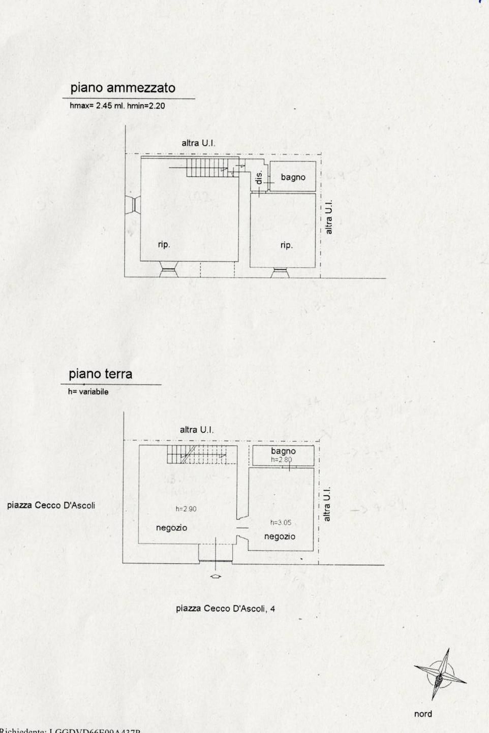 Proponiamo in affitto locale commerciale, in un prestigioso palazzo d'epoca, caratterizzato da una magnifica facciata in travertino ascolano. Il locale, ristrutturato nel 1997 in seguito ai lavori del terremoto, viene consegnato vuoto. Sito al piano terra, si sviluppa su due livelli, collegati da una comoda scala interna: - Il piano Terra si compone di due ambienti principali, rispettivamente di 33,64 mq con altezza 2.90 mq e 18,66 mq con altezza 3.05 mq, completati da un bagno cieco di servizio. - Il piano ammezzato, raggiungibile tramite scala interna, è anch'esso suddiviso in due locali di 36 mq e 21 mq, con un secondo bagno cieco di servizio dedicato. Le finiture interne sono dell'epoca della ristrutturazione e presentano pavimentazione in gress porcellanato, riscaldamento autonomo con termoconvettori ad aria, portone d'epoca. Il canone mensile, con utenze escluse, corrisponde a 1000Eu.. L'immobile a pochi passi dal Teatro Romano e alle storica chiese del SS. Crocifisso. La posizione in Piazza Cecco d'Ascoli garantisce massima visibilità, essendo il centro pulsante del Sestiere Porta Romana.